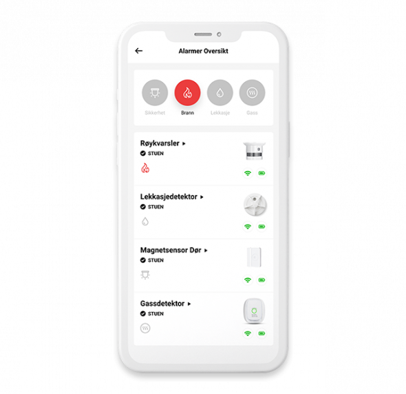 Få varsling ved røykutvikling eller bevegelse og se hva som skjer direkte i Heimgard app på din mobiltelefon