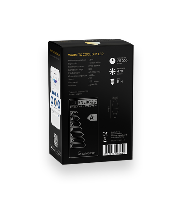 Lysstyrken og fargetemperatur kan justeres via Heimgard app, trådløs bryter eller med stemmen (krever da Google Assitant)