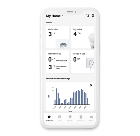 Les av detaljert info om strømforbruk i nåtid og kontroller dine husholdningsprodukter direkte fra telefonen.