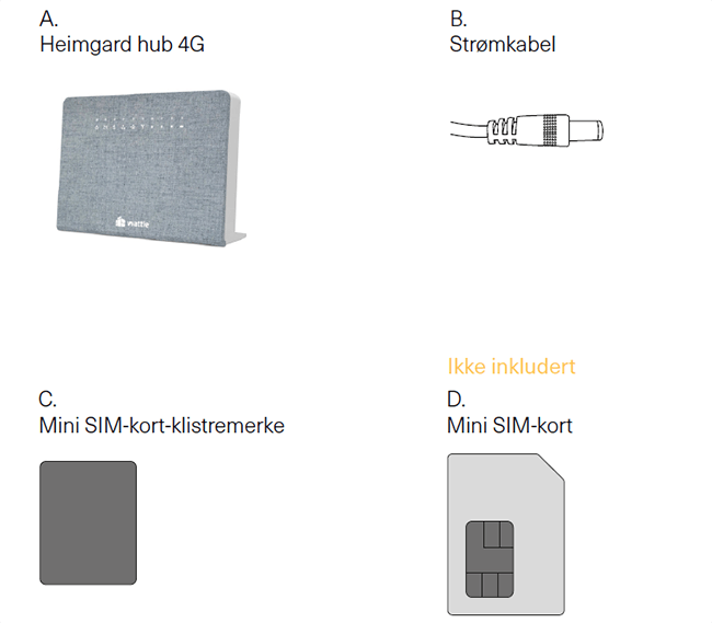 1. Koble strømkabelen (B) til hubben (A) og strømadapteren til et stikkontakt