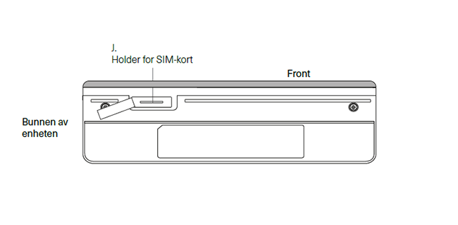 1. Sett inn Mini-SIM-kortet (C) inn i SIM-kortsporet (H).
