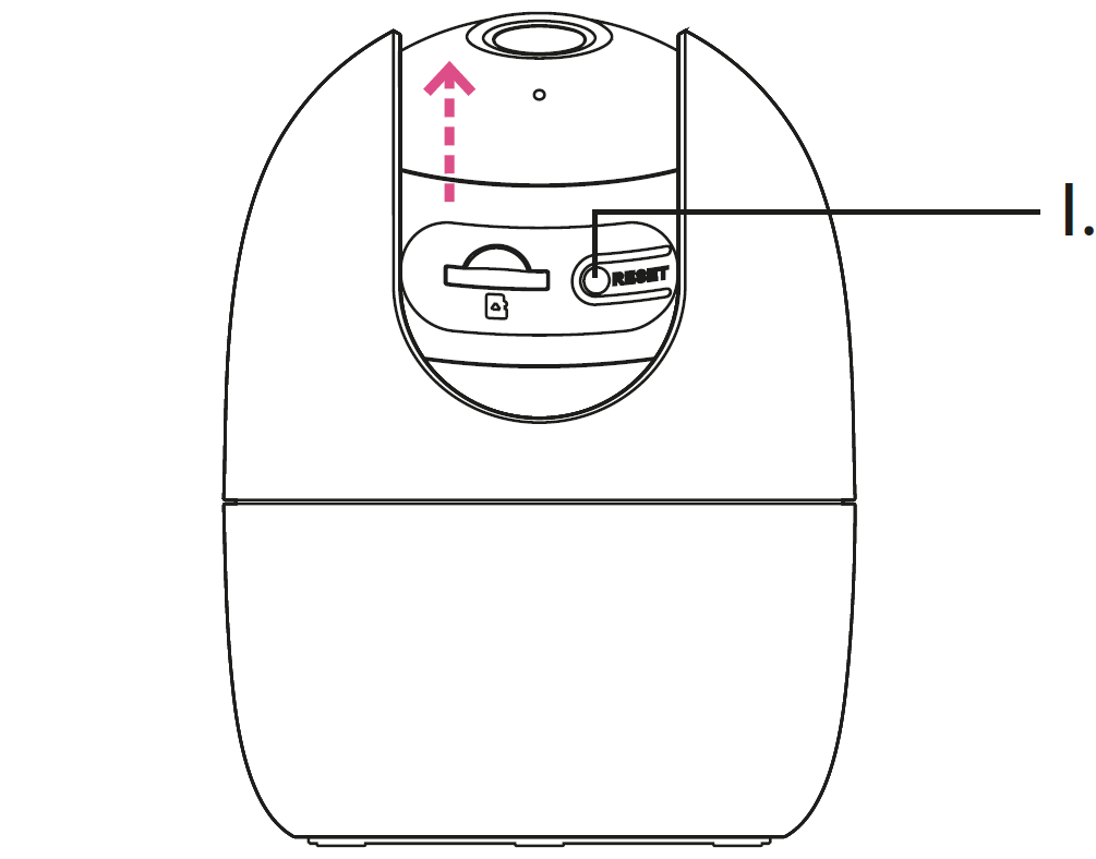 - Lokaliser tilbakestillingsknappen (I), ved å skyve kameralinsen (H) forsikrig opp til toppen av kameraet (se illustrasjonen under).